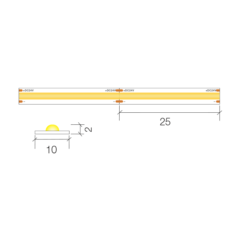 Experience smooth, premium illumination with our COB LED Strip designed for exceptional visual comfort, it produces a continuous, dot free line of light, making it perfect for shallow aluminium profiles where a visible dotting effect would normally occur. Packs are supplied with a pre soldered 1 metre 0.5mm² cables each end for ultimate convenience, tails and strip can be cut down to suit on site.