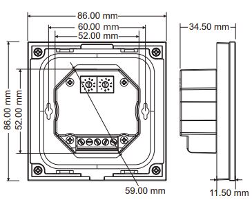 The TD3-S is a versatile DALI touch master panel designed for controlling DALI DT6 and DT8 lighting systems across a wide range of environments. It operates on a single DALI address and supports DT6 dimming, DT8 tunable white, RGB and RGBW control. It can be powered by the DALI bus or 24V DC and allows flexible address setup via an encoding switch with support for unicast, group and broadcast modes. Featuring a white glass, ultra-sensitive touch panel with colour slide, four scene memory and LED indicators, the TD3-S delivers smooth, accurate colour control with optional RF 2.4GHz remote compatibility.