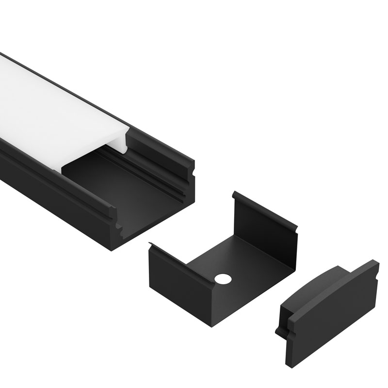 DSCHAN110OLBK profile is a slim, surface mounted solution ideal for applications such as toe kicks, retail display lighting, and bathroom cabinetry. Designed as a cost effective option, it delivers a clean, dot-free line of light when paired with the appropriate LED strips. Constructed from 6063 structural-grade aluminium, the profile acts as an efficient heat sink to support LED performance and longevity. It is paired with a durable PMMA (acrylic) diffuser, suitable for interior use or exterior installations out of direct sunlight. Installation is simple and fast, with the option of screw fixing using mounting clips or countersunk screws through the profile base for a secure, streamlined finish.
