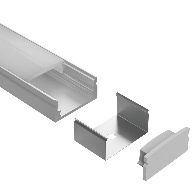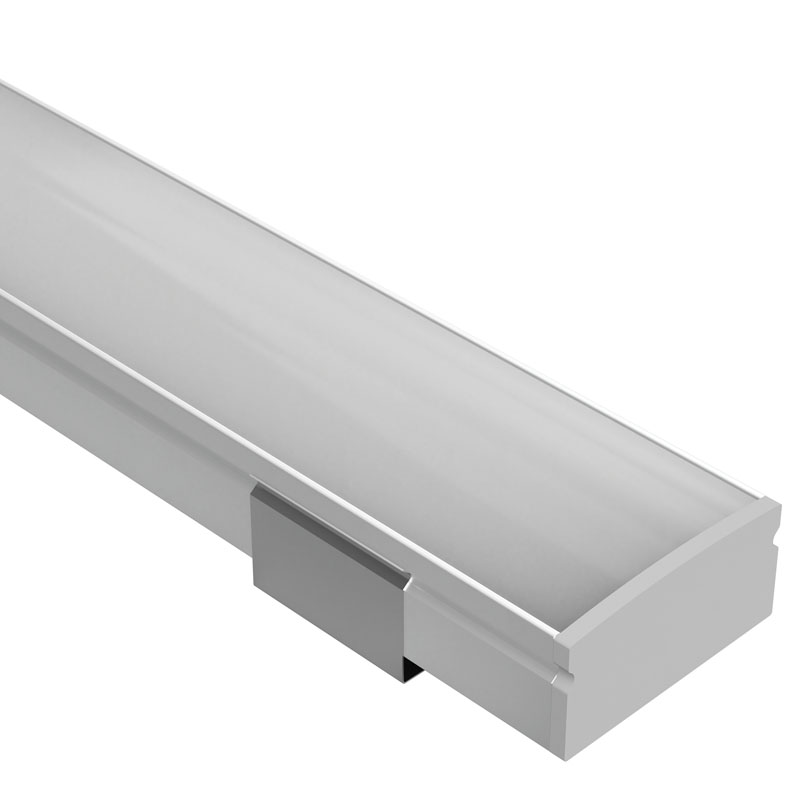 DSCHAN110FL profile is a slim, surface mounted solution ideal for applications such as toe kicks, retail display lighting, and bathroom cabinetry. Designed as a cost effective option, it delivers a clean, dot-free line of light when paired with the appropriate LED strips. Constructed from 6063 structural-grade aluminium, the profile acts as an efficient heat sink to support LED performance and longevity. It is paired with a durable PMMA (acrylic) diffuser, suitable for interior use or exterior installations out of direct sunlight. Installation is simple and fast, with the option of screw fixing using mounting clips or countersunk screws through the profile base for a secure, streamlined finish.