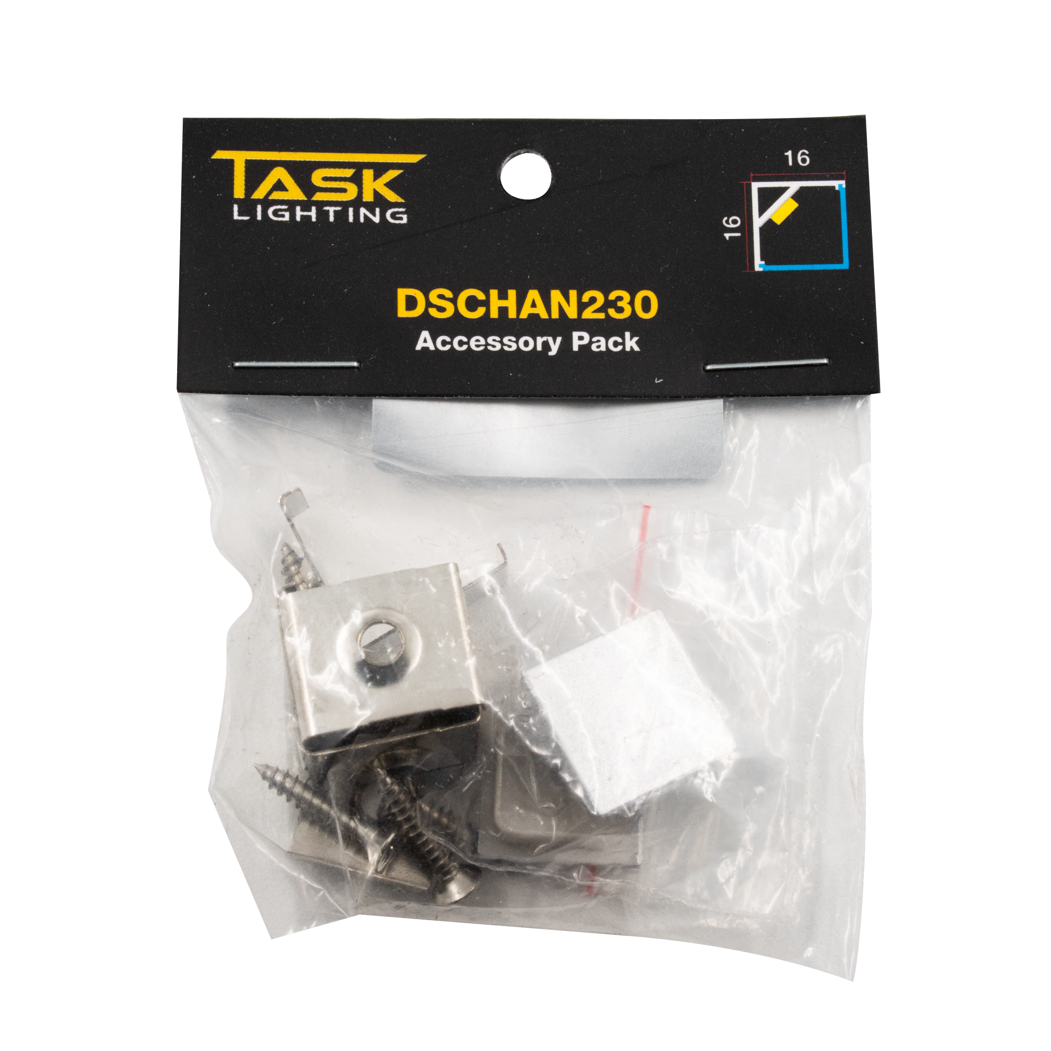 Accessory pack for DSCHAN230 Silver profile. Accessories include 2 x Endcaps, 4 x Mounting Bracket & Screws.