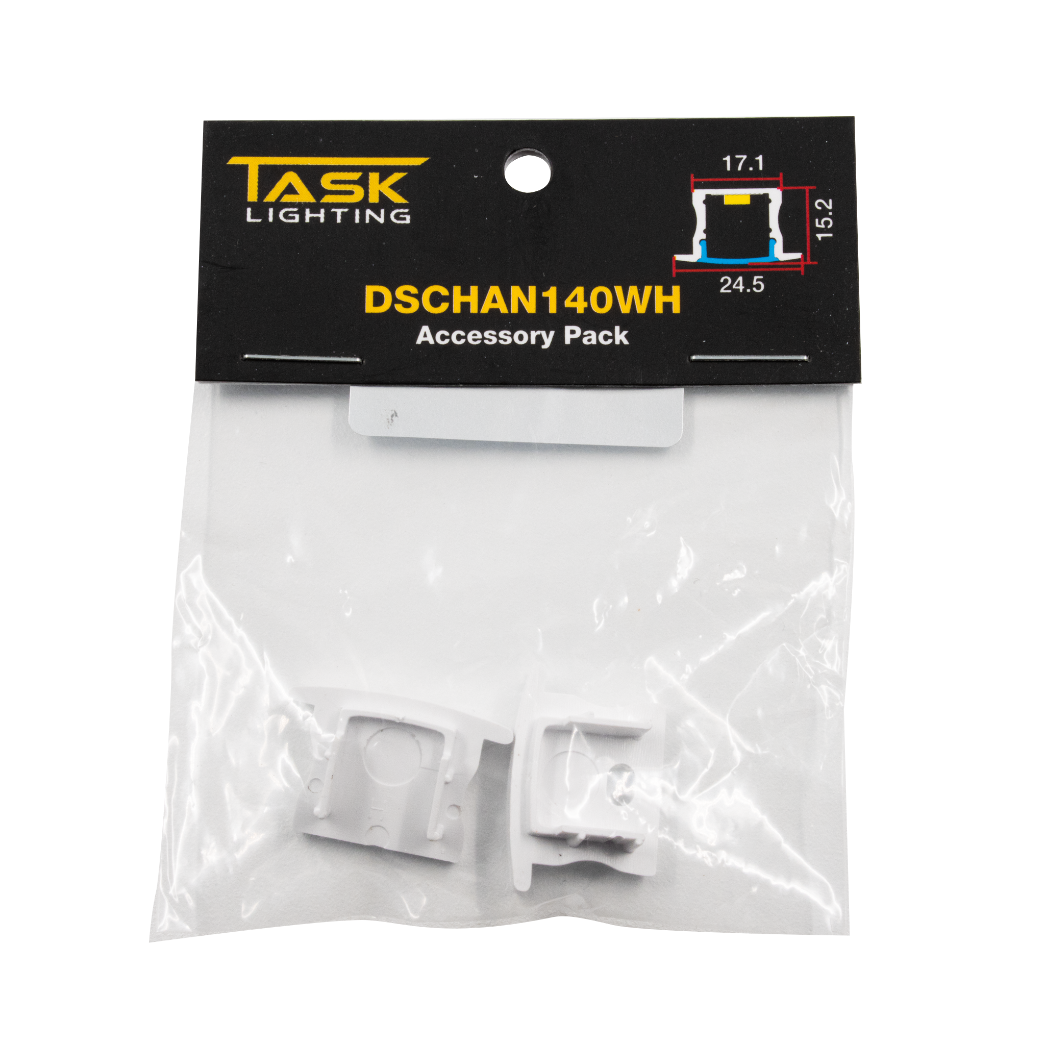 Accessory pack for DSCHAN120 White profile. Accessories include 2 x Endcaps.