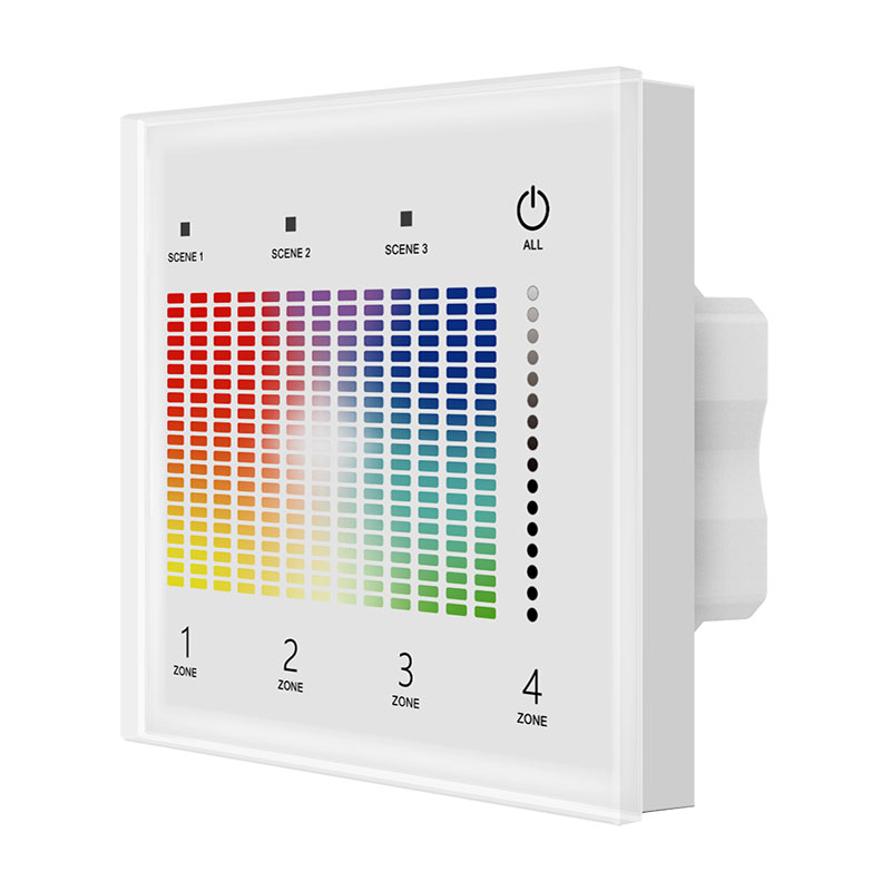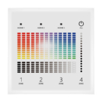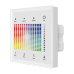 T13-4 RGB touch panel supports DMX or RF control with 4 independent control zones for full colour lighting. Featuring an ultra-sensitive glass touch panel with central colour wheel, it delivers smooth colour adjustment.