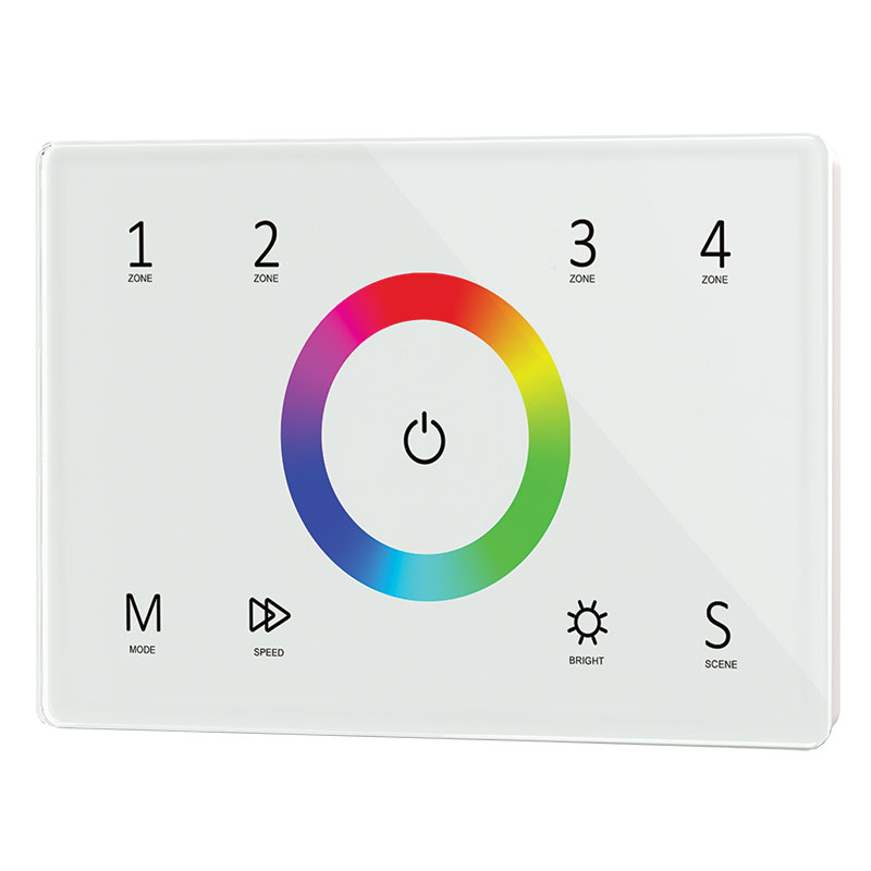 Designed for flexible lighting control, T13 glass touch panel supports DMX or RF control with a 4-zone remote function for RGB systems. Featuring smooth touch dimming, and wireless expansion via 2.4G RF controllers, it delivers precision control in a modern design.