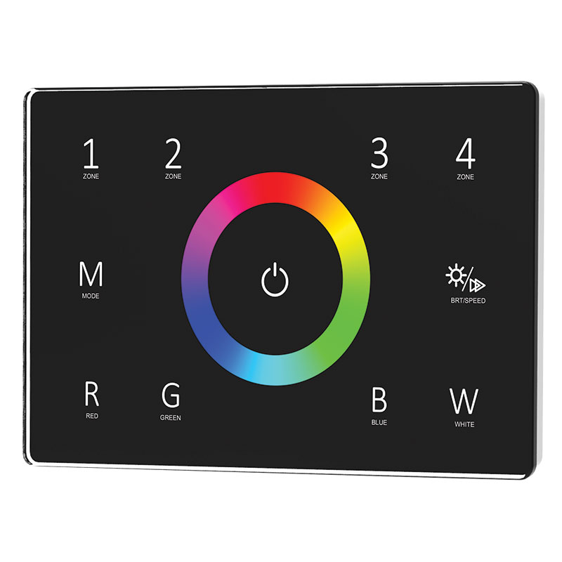 Designed for flexible lighting control, T14 glass touch panel supports DMX or RF control with a 4-zone remote function for RGBW systems. Featuring smooth touch dimming, and wireless expansion via 2.4G RF controllers, it delivers precision control in a modern design.