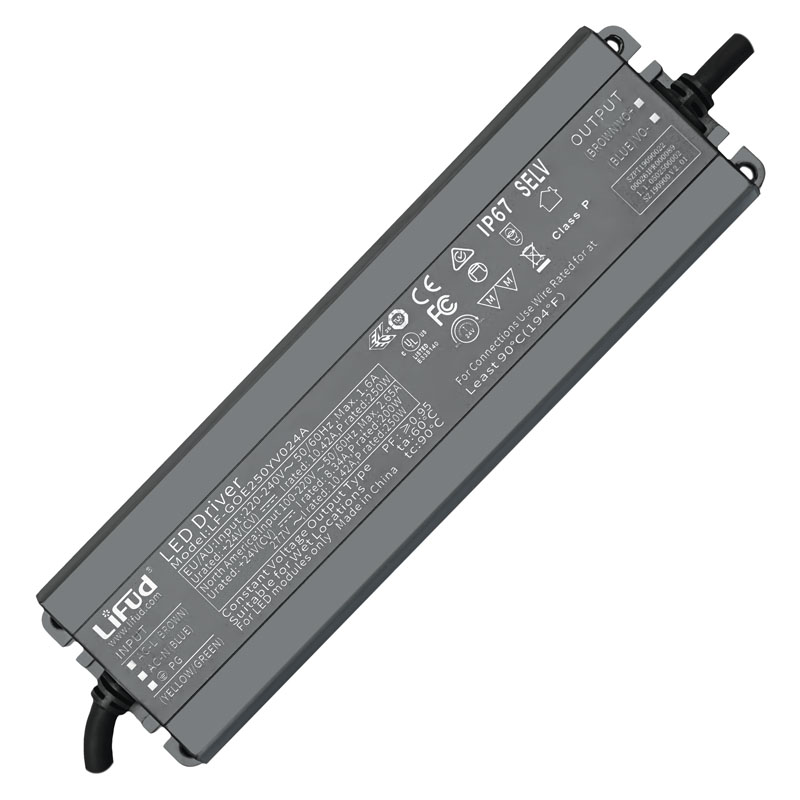 LF-GOE250YV024A is a 250W LED driver with a built-in potentiometer. This product was specifically designed for outdoor lighting, high bay lights and flood lighting projects. Super high efficiency and excellent heat-dissipation properties of GOE help to extend the product lifetime. The high-power-factor GOE makes better use of the power grid. Its low harmonic interference means low interference with the power grid and the electric devices in the circuit. All-round protection design improves the product stability which helps to save users’ maintenance cost. The potentiometer at the bottom helps to adjust the output voltage/power of the product, satisfying customers various demands. Also suitable for 100-277V input operation resulting in a 20% output de-rating.