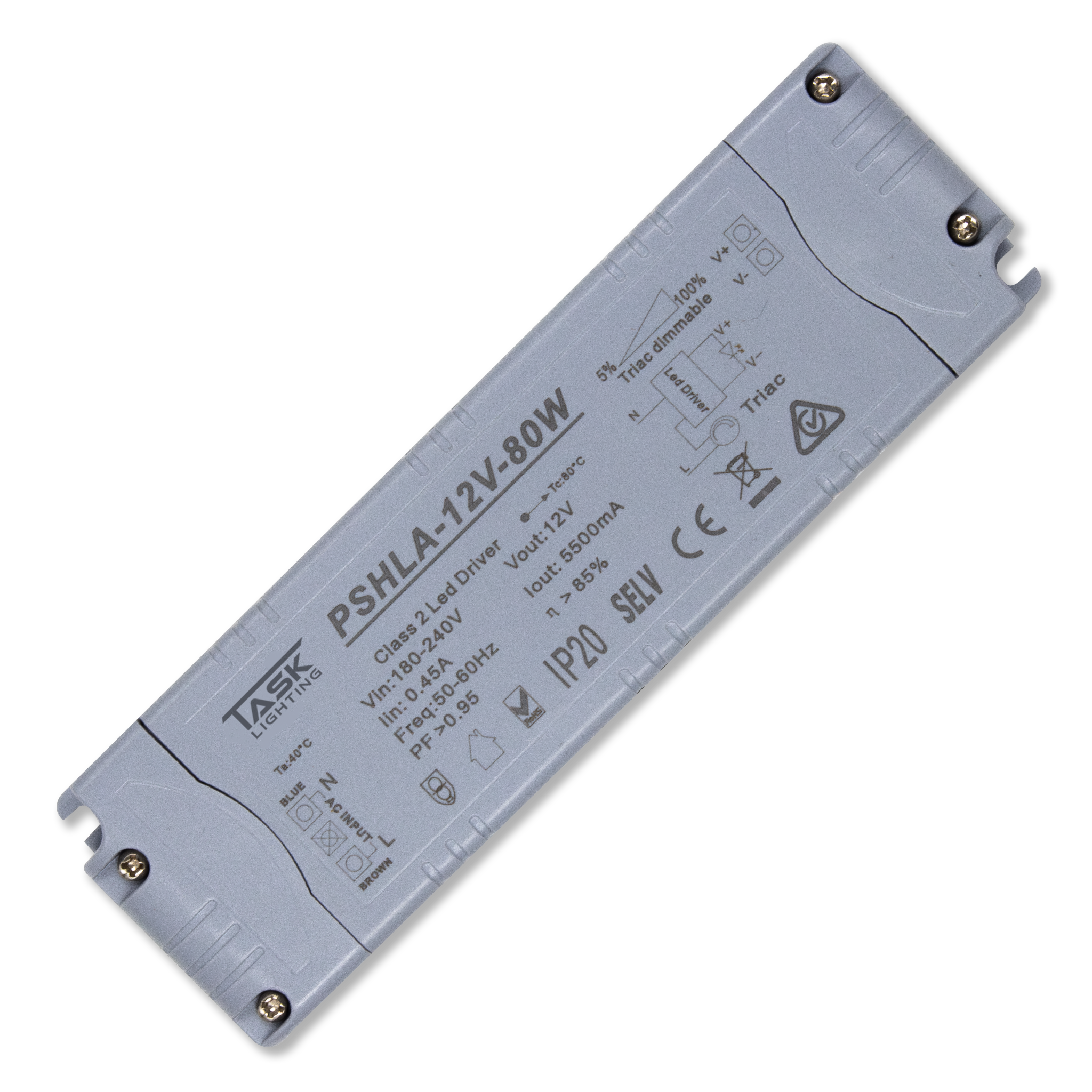 PSHLA drivers deliver a reliable 12VDC output, making them ideal for LED strip applications. Designed for efficient and dependable performance. Their compact form factor allows for easy installation across a variety of lighting setups. These drivers support smooth dimming from 5%–100% when used with a compatible dimmer and with a minimum 70% load, offering flexible lighting control for different applications. Built with covered terminals and designed to Class II & SELV standards, they provide an added level of safety and reliability. Available in a wide range of wattage's to suit a variety of applications and LED lighting outputs.