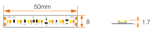LED Strip 19W/m 24V CRI90 1800-3000K Dim to Warm IP20