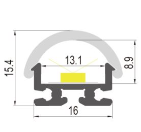 Shallow Surface Mounted 16mm x 16mm Aluminium Profile