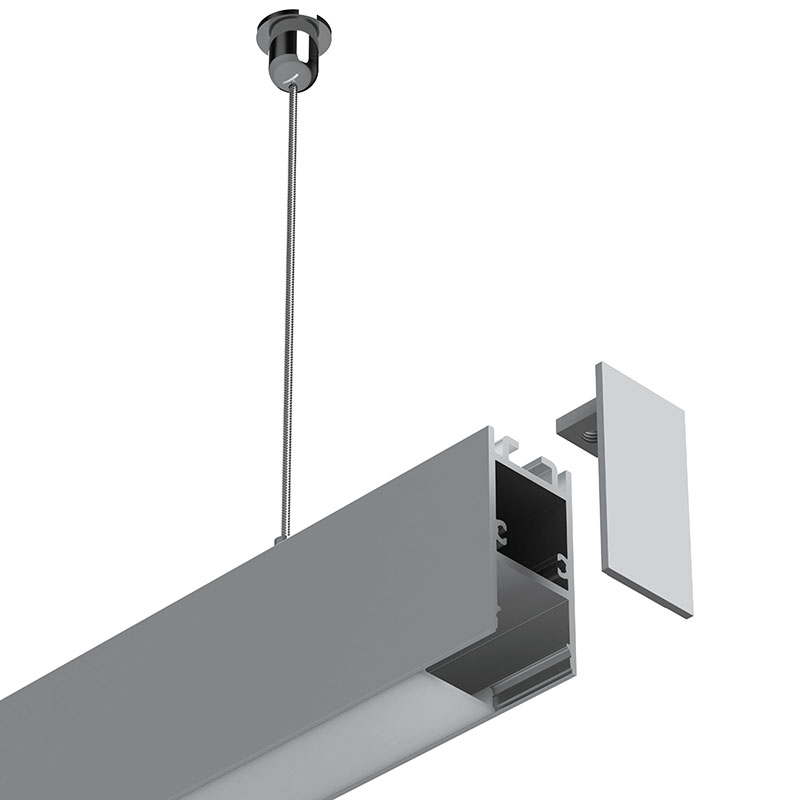 LEDCHAN770 makes a discrete slimline pendant or a surface mounted light option. Using a standard opal or frosted diffuser gives an approximate 65° spread. Ideal for lighting over benches, desks, and receptions.