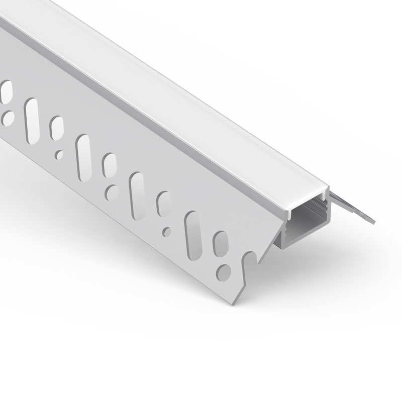 This external corner plaster-in aluminium profile is designed to create a crisp, continuous line of light around outside corners while remaining completely flush with the finished surface. Once plastered, the profile disappears into the wall or ceiling, leaving a clean architectural edge with no visible trim. Ideal for modern interiors, it allows lighting to wrap seamlessly around corners, delivering a refined, minimalist finish suitable for residential and commercial applications where precise detailing and visual continuity are essential.