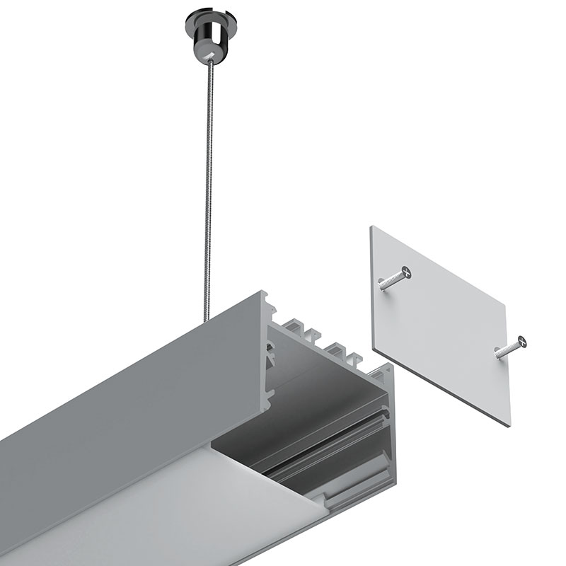 LEDCHAN860 is a large surface/suspended mounted profile designed for general applications that require high output LED strips. Its wide internal cavity is optimised for dual row configurations, or for a single row when used with reflectors that fit neatly into the side grooves to enhance light distribution.