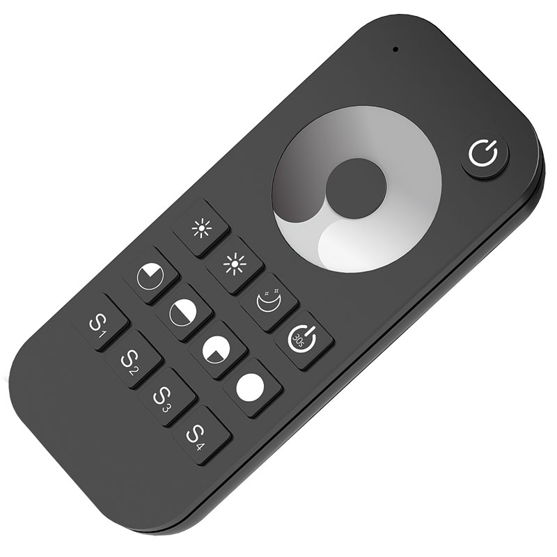 RT-1 single-zone touch dimming remote provides smooth and precise brightness control for single colour LED lighting. Featuring an ultra sensitive touch wheel, it allows effortless adjustment and can be paired with one or multiple receivers. Battery powered with an LED indicator for easy operation, it’s a simple and reliable lighting control solution.