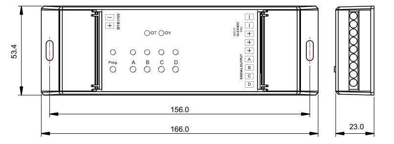 This constant voltage KNX LED dimmer delivers direct control of high-power LED lighting across four fully independent channels. Operating on a wide 12–36V DC input, it supports precise switching, absolute and relative dimming, real-time status and error reporting, and up to 15 programmable lighting scenes. Designed with secure push terminals and full KNX/EIB bus integration, it also features manual override control for added reliability.