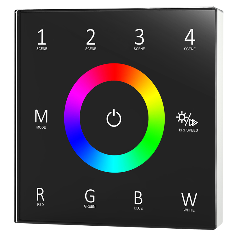The T4 RGBW touch wall panel delivers smooth, intuitive control for constant voltage lighting systems. Featuring an ultra sensitive, high strength glass touch interface with soft backlighting, it offers precise brightness and colour control at the touch of a finger. Compatible with RF 2.4G single-zone control, it provides flexible wired or wireless operation for modern lighting installations. Designed for premium interiors, it combines elegant styling with effortless performance.