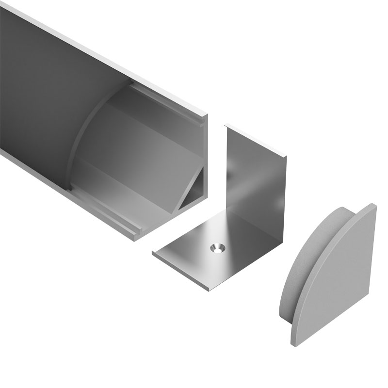 LEDCHAN200 is a low profile corner/surface mounted extrusion designed to deliver a wide 120° beam angle, making it ideal for display lighting, under cabinet applications, and above bathroom mirrors when mounted on its side. When paired with the appropriate LED strip, it provides smooth, even illumination, enhancing visibility while maintaining a clean, unobtrusive aesthetic. Its compact form allows it to integrate seamlessly into tight architectural spaces.
