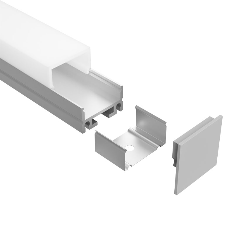LEDCHAN220 is a surface or suspended mounted profile featuring a square diffuser that delivers a wide 120° beam angle, making it suitable for a range of general and accent lighting applications. When paired with the appropriate LED strip, it provides smooth, even illumination while maintaining a clean, modern aesthetic. Its simple, functional form allows it to integrate seamlessly into cabinetry, retail displays, and architectural details.