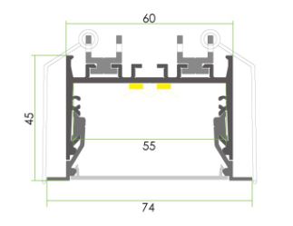 Large Recessed 73.8mm x 45mm Aluminium Profile