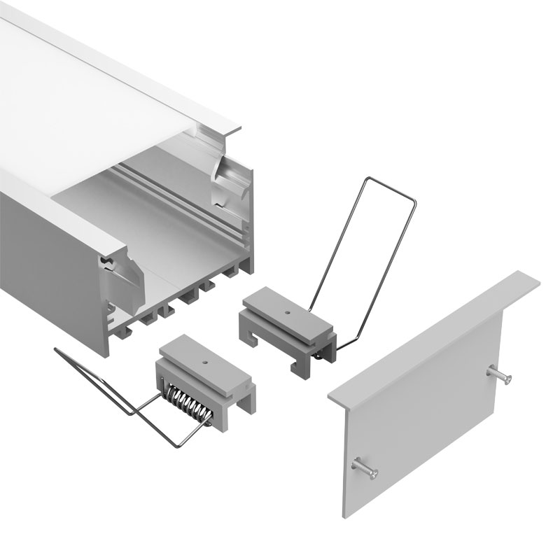 LEDCHAN280 is a large recessed profile with a flanged edge, designed for general applications that require high output LED strips. Its wide internal cavity is optimised for dual row configurations, delivering strong, uniform illumination suitable for commercial and architectural environments. The substantial profile design supports excellent thermal performance while maintaining a clean, integrated aesthetic in ceilings.